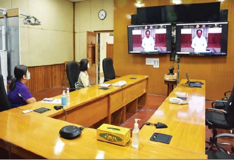တရုတ်ပြည်သူ့သမ္မတနိုင်ငံမှ မြန်မာနိုင်ငံသို့ လှူဒါန်းသည့် Sinovac ကိုဗစ်-၁၉ ရောဂါ ကာကွယ်ဆေးများ လွှဲပြောင်းလက်ခံခြင်း အခမ်းအနားကို ဗီဒီယိုကွန်ဖရင့်စနစ်ဖြင့်ကျင်းပရာ ကျန်းမာရေးဝန်ကြီးဌာန ပြည်ထောင်စုဝန်ကြီး ဒေါက်တာသက်ခိုင်ဝင်း၊ မြန်မာနိုင်ငံဆိုင်ရာ တရုတ်ပြည်သူ့သမ္မတနိုင်ငံ သံအမတ်ကြီး Mr. CHEN HAI နှင့် တာဝန်ရှိသူများ တက်ရောက်ခဲ့ကြသည်။