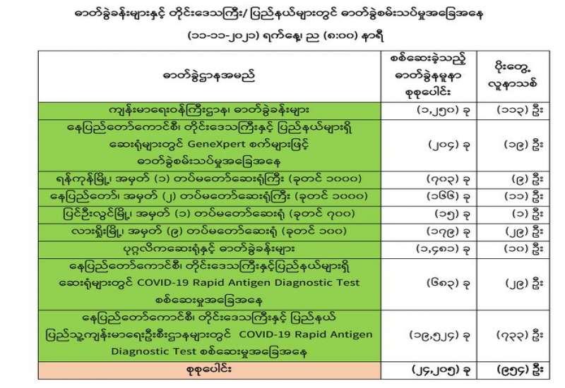 ကျန်းမာရေးဝန်ကြီးဌာနအနေဖြင့် နိုင်ငံအတွင်း ကူးစက်ဖြစ်ပွားနေသော COVID-19 ရောဂါ ကာကွယ်၊ ကုသ၊ ထိန်းချုပ်ရေးလုပ်ငန်းများကို အရှိန်အဟုန်မြှင့်ဆောင်ရွက်လျက်ရှိရာ ရောဂါထိန်းချုပ်ရေး လုပ်ငန်းများ အောင်မြင်နိုင်ရေးအတွက် ပြည်သူလူထုအနေဖြင့် -