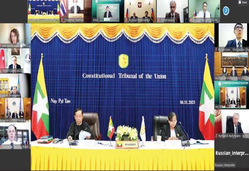 နိုင်ငံတော်ဖွဲ့စည်းပုံအခြေခံဥပဒေ ဆိုင်ရာ ခုံရုံးအဖွဲ့ဝင်များဖြစ်ကြ သည့် ဦးခင်မောင်ဦးနှင့် ဒေါ်နန်း စန္ဒာစမ်းတို့သည် နိုဝင်ဘာ ၁၀ ရက် နှင့် ၁၁ ရက်တို့တွင် အာရှနိုင်ငံ များ၏ ဖွဲ့စည်းပုံအခြေခံဥပဒေ ဆိုင်ရာတရားရုံးများနှင့်အဆင့်တူ အဖွဲ့အစည်းများအသင်း (AACCThe Association of Asian Constitutional Courts and Equivalent Institutions)e mosw အကြိမ်မြောက် အပြည်ပြည် ဆိုင်ရာ စာတမ်းဖတ်ပွဲသို့ Video Conferencingစနစ်ဖြင့် ပါဝင်တက် ရောက်ကြသည်။