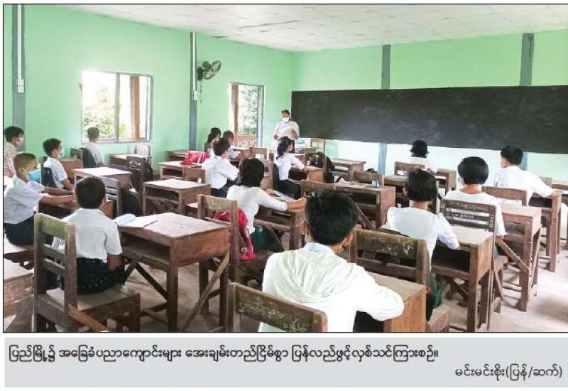 ကိုဗစ်-၁၉ ရောဂါ ဓာတ်ခွဲအတည်ပြုလူနာသစ်တွေ့ရှိမှု၊ ဓာတ်ခွဲအတည်ပြု လူနာ တွေ့ရှိမှုနှုန်းနှင့် ပိုးတွေ့ ရာခိုင်နှုန်းများကို သုံးသပ်ဆန်းစစ်၍ တိုင်းဒေသကြီးနှင့် ပြည်နယ်အသီးသီးရှိ မြို့နယ် (၄၆) မြို့နယ် မှအပ ကျန်မြို့နယ်များအားလုံးမှ အခြေခံပညာဦးစီးဌာနအောက်ရှိ အခြေခံပညာကျောင်းများ (ပုဂ္ဂလိကကျောင်းများ၊ ဘုန်းတော်ကြီးသင် ပညာရေးကျောင်းများအပါအဝင်) အား ၂၀၂၁-၂၀၂၂ ပညာသင်နှစ်အတွက် ယနေ့တွင် တည်ငြိမ်အေးချမ်းစွာ တစ်ပြိုင်တည်း ပြန်လည်ဖွင့်လှစ် သင်ကြားပေး လျက်ရှိသည်။