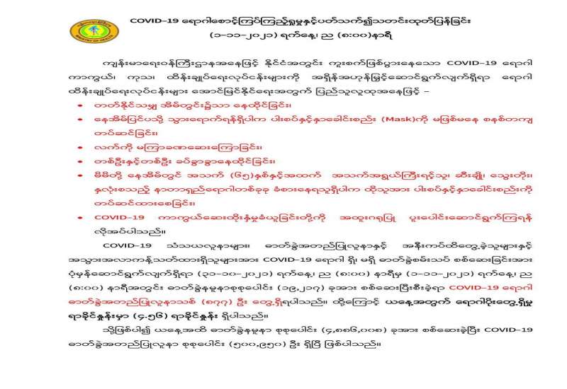 မြန်မာနိုင်ငံတွင် ကိုဗစ်-၁၉ ရောဂါဖြစ်ပွားမှုမှာ တစ်နေ့ထက်တစ်နေ့ ကျဆင်းလာခဲ့ပြီဖြစ်သည်။ အောက်တိုဘာလ ၂၉ ရက်နေ့တွင် ရောဂါပိုးတွေ့ရှိမှု ရာခိုင်နှုန်း ၄ ဒသမ ၄၇ ရာခိုင်နှုန်းမှ အောက်တိုဘာလ ၃၀ ရက်နေ့တွင် ၃ ဒသမ၈၂ ရာခိုင်နှုန်းသို့ ကျဆင်းသွားရာ ရည်မှန်းထားသည့် ပိုးတွေ့ရာခိုင်နှုန်း သုံးရာခိုင်နှုန်းအောက်သို့ ရောက်ရှိတော့မည်ဖြစ်သည်။ သုံးရာခိုင်နှုန်းအောက် ရောက်ရှိလာလျှင် စိတ်ချရသော အနေအထားဖြစ်၍ ကျောင်းများပြန်လည် ဖွင့်လှစ်နိုင်ရေး နိုင်ငံတော်စီမံအုပ်ချုပ် ရေးကောင်စီဥက္ကဋ္ဌ၊ နိုင်ငံတော်ဝန်ကြီးချုပ်က လမ်းညွှန်ထားသည်။