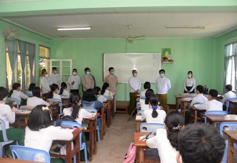 ပညာရေးဝန်ကြီးဌာန ပြည်ထောင်စုဝန်ကြီး ဒေါက်တာညွန့်ဖေသည် ဒုတိယဝန်ကြီး များဖြစ်ကြသော ဒေါက်တာဇော်မြင့်၊ ဦးဇော်ဝင်းတို့နှင့်အတူ ယနေ့နံနက် ၉ နာရီ ၁၅ မိနစ်တွင် နေပြည်တော် ဇမ္ဗူသီရိမြို့နယ် အမှတ်(၆) အခြေခံပညာအထက် တန်းကျောင်းသို့သွားရောက်၍ ကျောင်းသား၊ ကျောင်းသူများ အေးချမ်းပျော်ရွှင်စွာ ပညာသင်ကြားနေမှုကို လှည့်လည်ကြည့်ရှု အားပေးသည်။