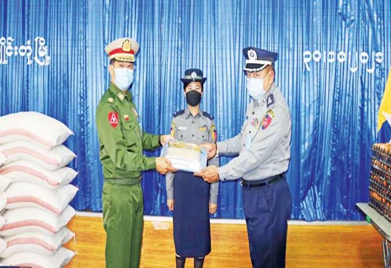 စစ်မှုထမ်းဟောင်း အဖွဲ့ဝင်များ၊ မြန်မာနိုင်ငံ ရဲတပ်ဖွဲ့ဝင်များ၊ မီးသတ်တပ်ဖွဲ့ဝင်များ၊ ပရဟိတ အသင်းအဖွဲ့များ စားရေးအဆင် ပြေစေရေးအတွက် တပ်မတော် နှင့် စေတနာရှင် အလှူရှင်များ | က စားသောက်ဖွယ်ရာများ၊ ထောက်ပံ့ငွေများနှင့် ရောဂါ ကာကွယ်ရေးအထောက်အကူပြု ပစ္စည်းများကို ထောက်ပံ့လှူဒါန်း လျက်ရှိသည်။