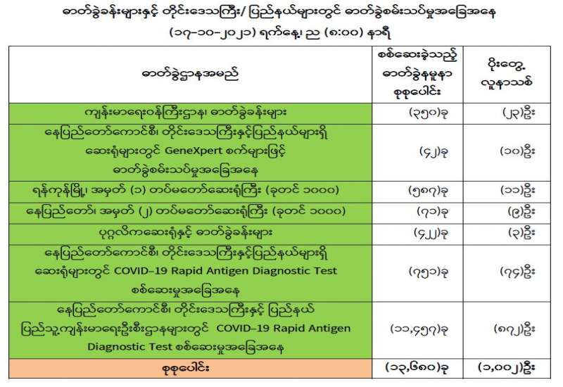 ကျန်းမာရေးဝန်ကြီးဌာနအနေဖြင့် နိုင်ငံအတွင်း ကူးစက်ဖြစ်ပွားနေသော COVID-19 ရောဂါ ကာကွယ်၊ ကုသ၊ ထိန်းချုပ်ရေး လုပ်ငန်းများကို အရှိန်အဟုန်မြှင့်ဆောင်ရွက်လျက်ရှိရာ ရောဂါ ထိန်းချုပ်ရေးလုပ်ငန်းများ အောင်မြင်နိုင်ရေးအတွက် ပြည်သူလူထု အနေဖြင့် -