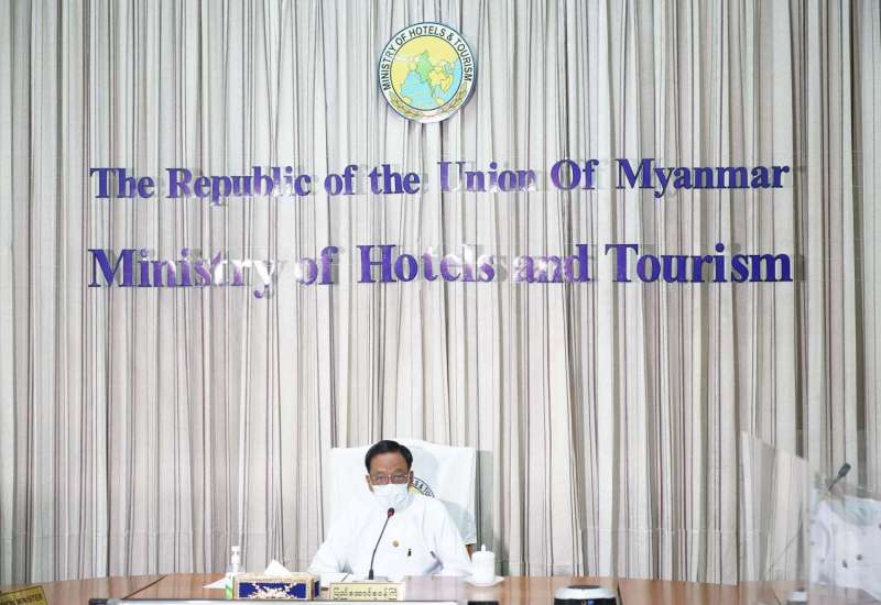 ဟိုတယ်နှင့်ခရီးသွားလာရေးဝန်ကြီးဌာန ပြည်ထောင်စုဝန်ကြီး ဒေါက်တာဌေးအောင် သည် နေပြည်တော်ကောင်စီအပါအဝင် တိုင်းဒေသကြီး/ ပြည်နယ် ရုံးခွဲတာဝန်ခံများ၊ မြန်မာ နိုင်ငံ ဟိုတယ် ဆိုင်ရာလုပ်ငန်းရှင်များအသင်း၏ ဟိုတယ်ဇုန်ဥက္ကဋ္ဌများနှင့် ခရီးသွားလုပ်ငန်း ဖွံ့ဖြိုး တိုးတက်ရေး ဆိုင်ရာ ညှိနှိုင်းအစည်းအဝေးကို ယနေ့နံနက်ပိုင်းတွင် ဝန်ကြီးဌာန၊ နီလာ အစည်း အဝေးခန်းမ၌ ဗီဒီယိုကွန်ဖရင့်စနစ်ဖြင့် ကျင်းပသည်။