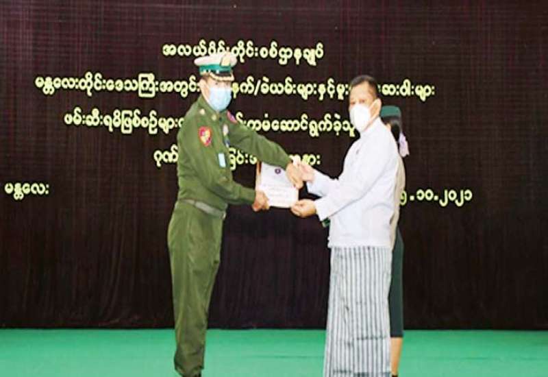 မန္တလေးတိုင်းဒေသကြီးအတွင်း လက်နက်/ခဲယမ်းများနှင့် မူးယစ်ဆေးဝါးများ ဖမ်းဆီးရမိခဲ့သည့် ဖြစ်စဉ်များတွင် စွမ်းစွမ်းတမံ ဆောင်ရွက်ခဲ့ကြသည့် လုံခြုံရေး တပ်ဖွဲ့ဝင်များအား ဂုဏ်ပြုချီးမြှင့်ခြင်းကို ယနေ့နံနက်ပိုင်းတွင် အလယ်ပိုင်းတိုင်း စစ်ဌာနချုပ်၊ ရန်အောင်မြင်ခန်းမ၌ ပြုလုပ်ရာ မန္တလေးတိုင်းဒေသကြီးဝန်ကြီးချုပ် ဦးမောင်ကို၊ အလယ်ပိုင်းတိုင်းစစ်ဌာနချုပ် တိုင်းမှူး ဗိုလ်ချုပ် ကိုကိုဦးနှင့် ဌာနဆိုင်ရာ တာဝန်ရှိသူများ၊ လုံခြုံရေးတပ်ဖွဲ့ဝင်များ တက်ရောက်ကြ သည်။