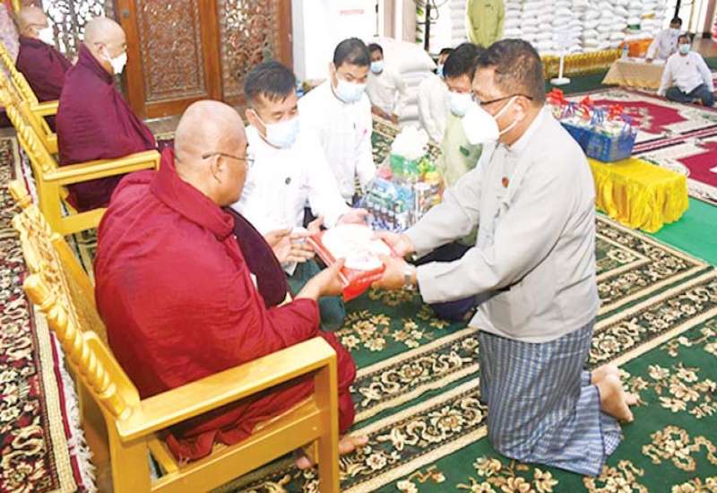 ကိုဗစ်-၁၉ ရောဂါ ကြိုတင်ကာကွယ်ရေးလုပ်ငန်းများ ဆောင်ရွက်နေသည့်ကာလအတွင်း ဆွမ်းကိစ္စရပ်များ အဆင်ပြေစေရန် ရည်ရွယ်၍ တပ်မတော် (ကြည်း၊ ရေ၊ လေ) အရာရှိ၊ စစ်သည်၊ အရာထမ်း၊ အမှုထမ်းများနှင့် စေတနာရှင်အလှူရှင်များက မြို့နယ်အသီးသီးရှိ ဘုန်းတော်ကြီး ကျောင်းများ၊ သာသနာနွယ်ဝင် သီလရှင်ကျောင်းများနှင့် ဘာသာရေးကျောင်းများသို့ ဆွမ်းဆန်တော်၊ ဆီ၊ ဆား၊ ပဲ အမယ်လေးမျိုးနှင့် လှူဖွယ် ပစ္စည်းများလှူဒါန်းခြင်း၊ နေ့ဆွမ်းများ ဆက်ကပ်လှူဒါန်းခြင်းနှင့် ကျန်းမာရေး စစ်ဆေးပေးခြင်းများကို ဆောင်ရွက်လျက်ရှိရာ ယနေ့တွင် မွန်ပြည်နယ်၊ မော်လမြိုင်မြို့နယ်အတွင်းရှိ ကျောင်းတိုက် အသီးသီးမှ သံဃာတော်များနှင့် သာသနာနွယ်ဝင် သီလရှင်များအတွက် မွန်ပြည်နယ်အစိုးရအဖွဲ့၊ အရှေ့တောင် တိုင်းစစ်ဌာနချုပ်နှင့် ကွပ်ကဲမှုအောက် တပ်ရင်း/ တပ်ဖွဲ့များမှ အရာရှိ၊ စစ်သည်၊ မိသားစုများနှင့် စေတနာရှင် အလှူရှင်များက စုပေါင်းလှူဒါန်းသည့် ဆွမ်းဆန်တော် ၄၄၅၃ အိတ်၊ ဆီ၊ ဆား၊ ပဲ၊ လှူဖွယ်ပစ္စည်းများနှင့် နဝကမ္မအလှူငွေများကို မော်လမြိုင်မြို့၊ သာသနာ့ဗိမ္မာန်တော်ကြီး၌ ပြည်နယ်ဝန်ကြီးချုပ် ဦးဇော်လင်းထွန်း၊ တိုင်းမှူး ဗိုလ်ချုပ် ကိုကိုမောင်နှင့် တာဝန်ရှိသူများ၊ စေတနာရှင်အလှူရှင်များက အသီးသီး ဆက်ကပ်လှူဒါန်းကြသည်။