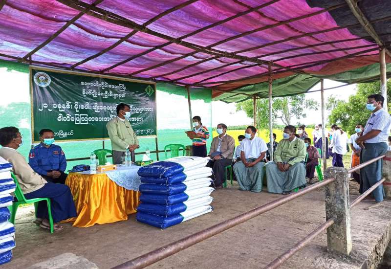 ဧရာဝတီတိုင်းဒေသကြီး၊ ငပုတောမြို့နယ်အတွင်းရှိ ၂၀၂၁ ခုနှစ်၊ မိုးစပါးမျိုးစေ့ထုတ် တောင်သူများအား စိုက်ပျိုးရေးဦးစီးဌာနက ဓာတ်မြေဩဇာထောက်ပံ့ပေးအပ်ပွဲကို ယမန်နေ့နံနက်ပိုင်းက သက္ကယ်ချောင်း စံပြကျေးရွာ၌ပြုလုပ်ခဲ့သည်။
