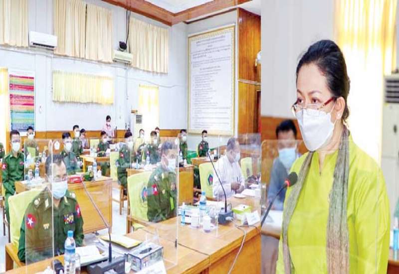 တပ်မတော်မှ နိုင်ငံတော်ကာကွယ်ရေးတာဝန် များကို ထမ်းဆောင်စဉ် ထိခိုက်ဒဏ်ရာရရှိခဲ့သော ဆေးအဆင့်နိမ့် အီးအေ (၁/၂) အရာရှိများအား နယ်ဘက်ဝန်ကြီးဌာန/အဖွဲ့အစည်းများသို့ လွှဲပြောင်းတာဝန်ထမ်းဆောင်နိုင်ရေး ဘုတ်အဖွဲ့အစည်းအဝေးကို ယနေ့နံနက်ပိုင်းတွင် လူမှုဝန်ထမ်း၊ ကယ်ဆယ်ရေးနှင့် ပြန်လည်နေရာချထားရေးဝန်ကြီးဌာန စုပေါင်း အစည်းအဝေး ခန်းမတွင် ကျင်းပရာ ဘုတ်အဖွဲ့ဝင်များ၊ အီးအေ (၁/၂) အရာရှိများ တက်ရောက်ကြသည်။
