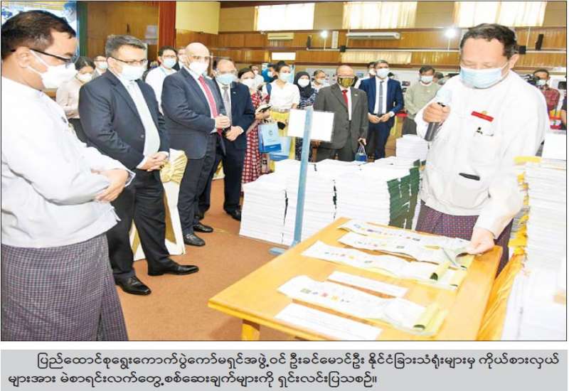 ပညာရေးဝန်ကြီးဌာန ပြည်ထောင်စုဝန်ကြီး ဒေါက်တာညွန့်ဖေသည် ဒုတိယဝန်ကြီး ဒေါက်တာဇော်မြင့်၊ ဦးဇော်ဝင်းတို့နှင့်အတူ ယနေ့နံနက် ၉ နာရီတွင် နေပြည်တော် ဇေယျာသီရိမြို့နယ် အမှတ်(၁)အခြေခံပညာ အထက်တန်းကျောင်း၌ တာဝန်ခံကျောင်းအုပ်များ၊ ကျောင်းအကျိုးတော်ဆောင်များ၊ ဆရာဆရာမများနှင့် တွေ့ဆုံ၍ ကျောင်းများ ပြန်လည် ဖွင့်လှစ်သည့်အခါ အေးချမ်းစွာ ပညာသင်ကြား သင်ယူနိုင်ရေးအတွက် စီစဉ်ဆောင်ရွက်ထားမှုများကို လှည့်လည်ကြည့်ရှုစစ်ဆေးသည်။