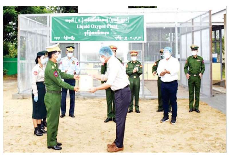 မန္တလေးတိုင်းဒေသကြီး မိတ္ထီလာမြို့ရှိ တပ်မတော်ဆေးရုံ၌ တည်ဆောက်ပြီးစီးသွားသည့် တန် ၂၀ my Liquid Oxygen Plant ဖွင့်ပွဲကို ယနေ့ နံနက်ပိုင်းတွင် အဆိုပါ ဆေးရုံ၌ ပြုလုပ်ရာ အလယ်ပိုင်း တိုင်းစစ်ဌာနချုပ် တိုင်းမှူး ဗိုလ်ချုပ် ကိုကိုဦးနှင့် တာဝန်ရှိသူများ၊ အလှူရှင်များ တက်ရောက် ကြသည်။
