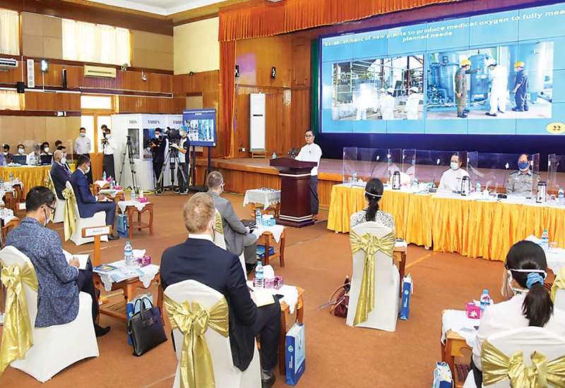 ကိုဗစ်-၁၉ ရောဂါဓာတ်ခွဲအတည်ပြု ပိုးတွေ့လူနာများနှင့် သီးသန့်စောင့် ကြည့်ရမည့်သူများကို ကုသရေးလုပ်ငန်းများ ဆောင်ရွက်ရာတွင် အောက်ဆီဂျင် လိုအပ်ချက်များကို တစ်ဖက် တစ်လမ်းမှ အထောက်အကူပြုစေရန်အတွက် တပ်မတော်နှင့်အလှူရှင်များက အောက်ဆီ ဂျင်အိုးများ၊ ရောဂါကာကွယ်ရေး အထောက်အကူပြုပစ္စည်းများနှင့် အာဟာရဖြည့်စား သောက်ဖွယ်ရာများကို တိုင်းဒေသကြီးနှင့် ပြည်နယ်အသီးသီးရှိ ပြည်သူ့ဆေးရုံများ၊ တပ်မတော် ဆေးရုံများ၊ ကျန်းမာရေးဌာနများ၊ ကိုဗစ်စင်တာများနှင့် လူမှုကူညီရေး အသင်းအဖွဲ့များသို့ ပေးပို့လှူဒါန်းလျက်ရှိသည်။