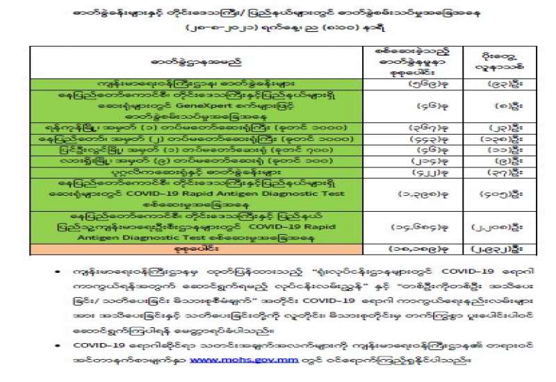 ကျန်းမာရေးဝန်ကြီးဌာနအနေဖြင့် နိုင်ငံအတွင်း ကူးစက်ဖြစ်ပွားနေသော COVID-19 ရောဂါ ကာကွယ်၊ ကုသ၊ ထိန်းချုပ်ရေးလုပ်ငန်းများကို အရှိန်အဟုန်မြှင့်ဆောင်ရွက်လျက်ရှိရာ ရောဂါ ထိန်းချုပ်ရေးလုပ်ငန်းများ အောင်မြင်နိုင်ရေးအတွက် ပြည်သူလူထုအနေဖြင့် -