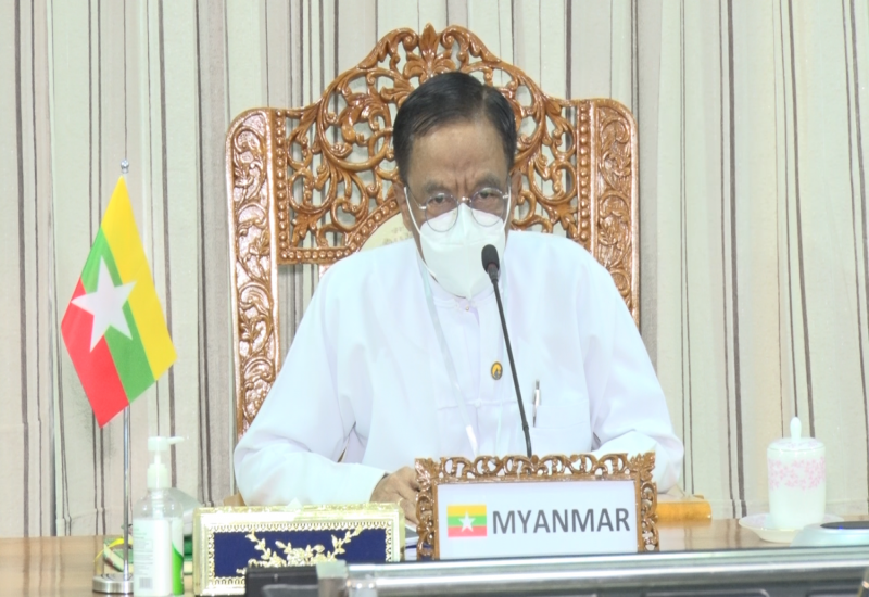 ၂၀၂၁ ခုနှစ် အောက်တိုဘာလမှ ၂၀၂၂ ခုနှစ် မတ်လအထိ (၆)လအတွက် ပြည်ထောင်စု၏ အရအသုံး ခန့်မှန်းခြေငွေစာရင်းများ တင်ပြခြင်းဆိုင်ရာ ညှိနှိုင်း အစည်းအဝေးကို ယနေ့မွန်းလွဲပိုင်းတွင် နေပြည်တော်ရှိ နိုင်ငံတော်စီမံအုပ်ချုပ်ရေးကောင်စီ ဥက္ကဋ္ဌရုံး အစည်းအဝေးခန်းမ၌ကျင်းပရာ ဘဏ္ဍာရေးဆိုင်ရာကော်မရှင် ဒုတိယဥက္ကဋ္ဌ၊ နိုင်ငံတော် စီမံအုပ်ချုပ်ရေးကောင်စီ ဒုတိယဥက္ကဋ္ဌ၊ ဒုတိယဝန်ကြီးချုပ် ဒုတိယ ဗိုလ်ချုပ်မှူးကြီး စိုးဝင်း တက်ရောက် အမှာစကား ပြောကြားသည်။
