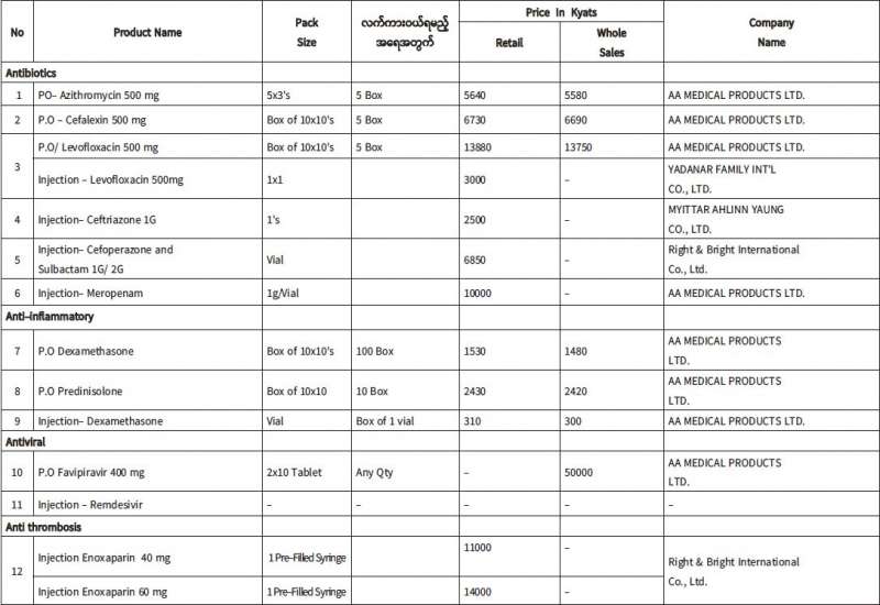 မြန်မာနိုင်ငံ ဆေးနှင့် ဆေးပစ္စည်း လုပ်ငန်းရှင်များအသင်းသည် ကိုဗစ်- ၁၉ ရောဂါ ကာကွယ်၊ ကုသရေးဆိုင်ရာ ဆေးဝါး၊ ဆေးပစ္စည်းမျိုးစုံတို့ကို အများပြည်သူများ ဈေးနှုန်းချိုသာစွာဖြင့် တင်သွင်းသူများထံမှ တိုက်ရိုက်ဝယ်ယူရရှိနိုင်စေရန်အတွက်လည်းကောင်း၊ အရည်အသွေး စစ်မှန်၍ ယုံကြည်စိတ်ချရသော မှတ်ပုံတင်ရှိ ဆေးဝါး၊ ဆေးပစ္စည်းများကို တင်သွင်းသည့်