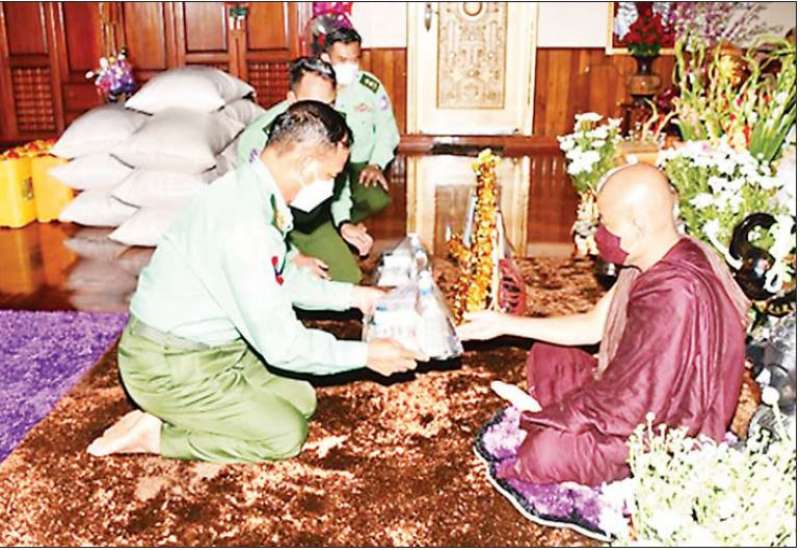 မြို့နယ်အသီးသီးရှိ ဘုန်းတော် ကြီးကျောင်းများ၊ သာသနာ့ နွယ်ဝင် သီလရှင်ကျောင်းများနှင့် ဘာသာရေး ကျောင်းများတွင် ဆွမ်းဆန်တော်၊ ဆီ၊ ဆား၊ ပဲ အမယ်လေးမျိုးနှင့် လှူဖွယ်ပစ္စည်း | များ လှူဒါန်းခြင်း၊ နေ့ဆွမ်းများ ဆက်ကပ်လှူဒါန်းခြင်းနှင့် ကျန်းမာရေးစစ်ဆေးပေးခြင်း များကို ဆောင်ရွက်လျက်ရှိရာ ယနေ့တွင် မွန်ပြည်နယ် ရေးမြို့နယ် ပုပ္ပဝတီကျေးရွာရှိ ပုပ္ပရာမကျောင်း တိုက်၊ အစင်စံပြကျေးရွာရှိ သာသနာ့ဇောတိကကျောင်းတိုက်နှင့် ထန်းခြောက်ပင်ကျောင်း တိုက်များသို့ ကာကွယ်ရေးဦးစီးချုပ်ရုံး(ကြည်း)မှ ဒုတိယဗိုလ်ချုပ်ကြီး အောင်စိုး၊ အရှေ့တောင် တိုင်း စစ်ဌာနချုပ် တိုင်းမှူး ဗိုလ်ချုပ် ကိုကိုမောင်နှင့် အဖွဲ့ဝင်များက သွားရောက်၍ သံဃာတော်များအား ဆွမ်းဆန်တော်၊ ဆန်၊ ဆီ၊ လှူဖွယ်ပစ္စည်းများနှင့် ကိုဗစ်-၁၉ရောဂါကြိုတင် ကာကွယ်ရေး အထောက်အကူပြု ဆေးဝါးများကို ဆက်ကပ်လှူဒါန်းကြ သည်။