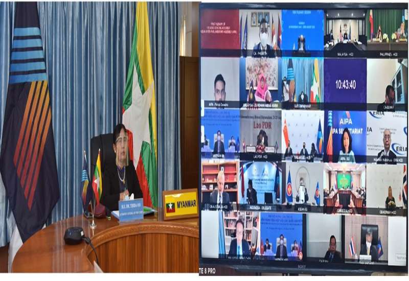 (၄၂) ကြိမ်မြောက် အာဆီယံပါလီမန်များ အထွေထွေညီလာခံ (42nd General Assembly of ASEAN Inter-Parliamentary Assembly)ကို ဘရူနိုင်းနိုင်ငံ အပြည်ပြည်ဆိုင်ရာ ကွန်ဗင်းရှင်းဗဟိုဌာန၌ ယနေ့ နံနက် ၈ နာရီခွဲက Virtual စနစ်ဖြင့်ကျင်းပရာ ပြည်ထောင်စုရှေ့နေချုပ် ဒေါက်တာသီတာဦးနှင့် မြန်မာကိုယ်စားလှယ်အဖွဲ့သည် ပြည်ထောင်စုရှေ့နေချုပ်ရုံး အစည်းအဝေးခန်းမမှ ပါဝင်တက်ရောက်ခဲ့ကြသည်။