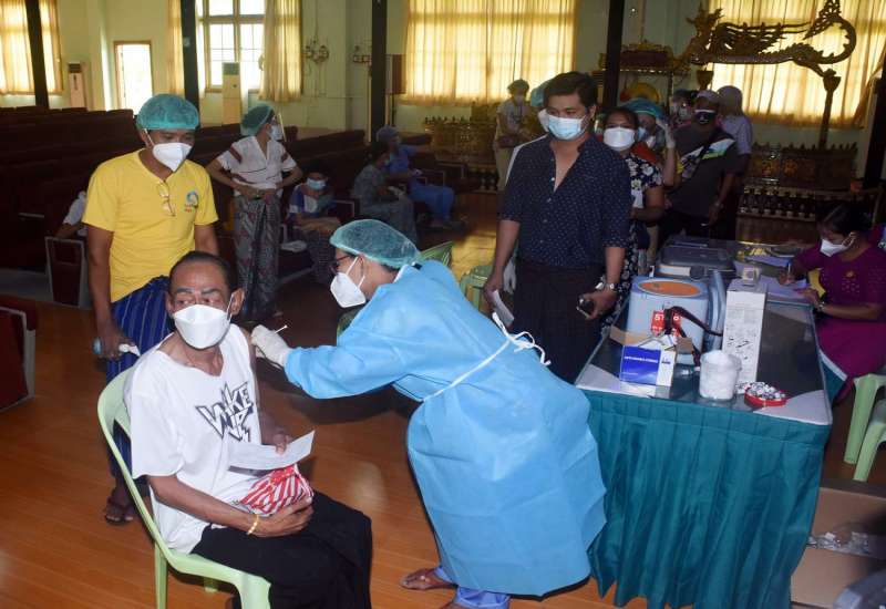 မြန်မာနိုင်ငံသဘင်အစည်းအရုံးမှ သဘင်ပညာရှင် အဖိုး/အဖွားများနှင့် တာဝန်ထမ်းဆောင်ဆဲ အဖွဲ့ဝင်များကို ယနေ့နံနက် ၁ဝ နာရီတွင် ရန်ကုန်တိုင်းဒေသကြီး၊ ဒဂုံမြို့သစ် (တောင်ပိုင်း) မြို့နယ်ရှိ အမျိုးသားယဉ်ကျေးမှုနှင့် အနုပညာတက္ကသိုလ် (ရန်ကုန်)တွင် ကျန်းမာရေးဝန်ကြီးဌာနမှ ကျန်းမာရေးဝန်ထမ်း ဆရာဝန်/ ဆရာမများက ကိုဗစ်-၁၉ ကာကွယ်ဆေးထိုးနှံ ဆောင်ရွက် ပေးသည်။