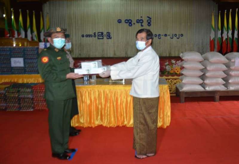 ကိုဗစ်- ၁၉ ရောဂါ ကာကွယ်၊ ထိန်းချုပ်၊ ကုသရေးလုပ်ငန်းများကို အရှိန် အဟုန်မြှင့် ဆောင်ရွက်လျက်ရှိရာ သွားလာမှုကန့်သတ်ချက်များကြောင့် စစ်မှုထမ်း ဟောင်းအဖွဲ့ဝင်များ၊ မြန်မာနိုင်ငံရဲတပ်ဖွဲ့ဝင်များ၊ ပြည်သူ့စစ်(ဌာနေ)တပ်ဖွဲ့ဝင်များ၊ ကျန်းမာရေးဝန်ထမ်းများ၊ စေတနာ့ဝန်ထမ်း Volunteerများနှင့် ဒေသခံပြည်သူများ စားရေးအဆင်ပြေစေရေးအတွက် တပ်မတော်နှင့် စေတနာရှင်အလှူရှင်များက စားသောက်ဖွယ်ရာများနှင့် ရောဂါ ကာကွယ်ရေးအထောက်အကူပြုပစ္စည်းများကို ထောက်ပံ့လှူဒါန်းလျက်ရှိသည်။