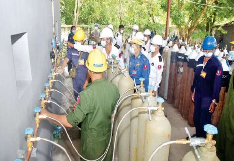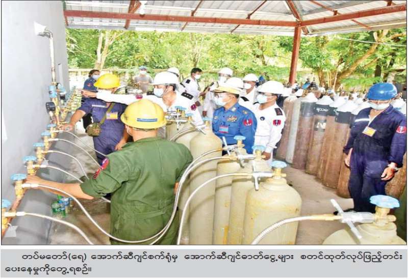ကိုဗစ်-၁၉ ရောဂါ ကာကွယ်၊ ထိန်းချုပ်၊ ကုသရေးလုပ်ငန်းများအတွက် တပ်မတော်မှ လိုအပ်သော ကူညီထောက်ပံ့လှူဒါန်းမှုများအား စဉ်ဆက်မပြတ် ဆောင်ရွက်ပေးလျက်ရှိရာ အောက်ဆီဂျင်လိုအပ်ချက်များကို ပိုမိုဖြည့်တင်းပေးနိုင်ရန်အတွက် သန်လျင်တပ်နယ်ရှိ ရေတပ်သင်္ဘောကျင်းဌာနချုပ်တွင် KZO-100 အမျိုးအစား Oxygen Plant အား ဇူလိုင်လ ၂၁ ရက်နေ့မှစတင်၍ တပ်မတော်(ရေ)မှ အင်ဂျင်နီယာများဖြင့် တပ်ဆင်စမ်းသပ်မောင်းနှင်ခဲ့ရာ ယနေ့တွင် အောက်စီဂျင် ဓာတ်ငွေ့များ စတင်ထုတ်လုပ် ဖြည့်တင်းပေးနိုင်ခဲ့ပြီဖြစ်ကြောင်း သိရသည်။