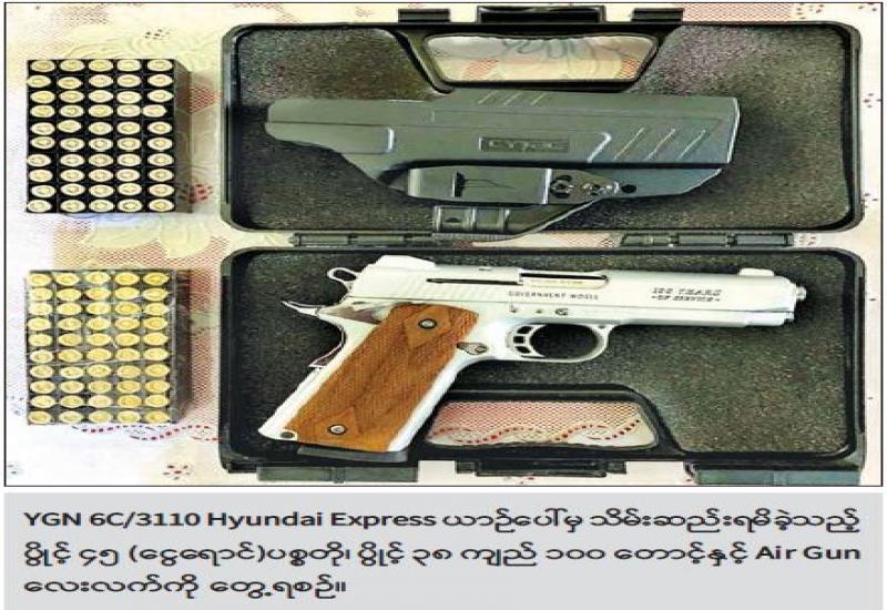 ရန်ကုန်တိုင်းဒေသကြီး၊ မရမ်းကုန်းမြို့နယ်၌ ရွှေဆိုင်တစ်ဆိုင်အား သေနတ်ပြ၍ ခြိမ်းခြောက် လုယူရန် ကြိုးစားခဲ့သူ ၅ ဦးအား လုံခြုံရေးတပ်ဖွဲ့ဝင်များနှင့်အတူ ပြည်သူလူထုမှ ပူးပေါင်းပါဝင် ဖမ်းဆီးခဲ့ရာ လုယူရန်ကြိုးစားခဲ့သူ အမျိုးသား ၁ ဦးအား ပစ္စတိုသေနတ် ၁ လက်နှင့်အတူ ဖမ်းဆီးရမိ ခဲ့ကြောင်း သိရသည်။