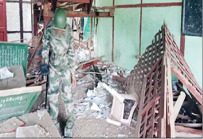 ကချင်ပြည်နယ်၊ မိုးမောက်မြို့၊ ခါနန်ရပ်ကွက်ရှိ အခြေခံပညာ အထက်တန်း ကျောင်း၌ ယနေ့နံနက်ပိုင်းတွင် ကျောင်းသား၊ ကျောင်းသူများ စိတ်အေးချမ်းသာစွာ ပညာသင်ကြားလျက်ရှိစဉ် တည်ငြိမ်အေးချမ်းမှုကို မလိုသည့် အကြမ်းဖက်သူများက နံနက် ၉ နာရီခွဲခန့်တွင် အဆိုပါကျောင်းရှိ နှစ်ထပ်ကျောင်းဆောင်၏ အရှေ့ လှေကား အောက်၌ ဒေသန္တရ လက်လုပ်မိုင်း ၂ လုံးဖြင့် ဆင်ခြေတုံတရားမဲ့စွာ ဖောက်ခွဲခဲ့ကြောင်း သိရှိရသည်။