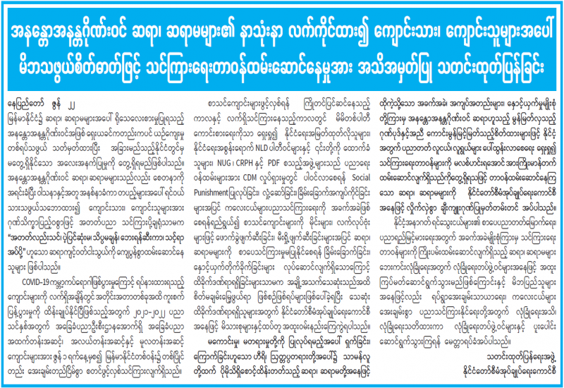 အကြမ်းဖက်သမားတို့၏ အကြမ်းဖက်လုပ်ရပ်များက ပို၍ပို၍ လက်ရဲ ဇက်ရဲဖြစ်လာကြသည်ကို သတင်းများအရ သိရသည်။ အေးချမ်းစွာ နေထိုင်လိုသူပြည်သူများ၊ နိုင်ငံ့ဝန်ထမ်းများ၊ ကျောင်းဆရာ ဆရာမများ၊ ကျန်းမာရေးဝန်ထမ်းများ၊ ပညာရေးဝန်ထမ်းများ၊ ရပ်/ကျေး အုပ်ချုပ်ရေးမှူးများ၊ ရိုးသားစွာပရိယေသန ဝမ်းစာရှာဖွေနေထိုင်သူများမှာ အကြမ်းဖက်မှုတို့၏သားကောင်ဘဝသို့ ကျရောက်ရသည်။ အချို့ ဇနီးမောင်နှံအလိုက်၊ အချို့တစ်မိသားစုလုံး ရက်ရက်စက်စက် သတ်ဖြတ်ခံရသည်။