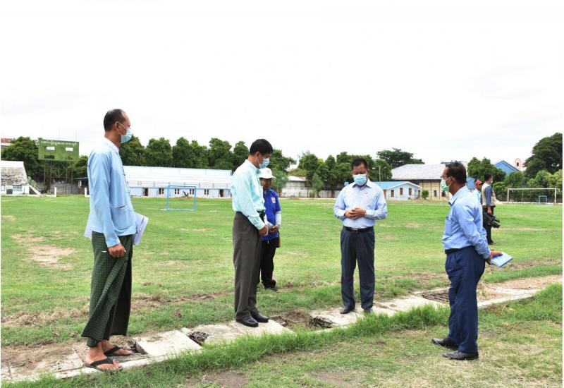 မန္တလေးတိုင်းဒေသကြီး စီမံအုပ်ချုပ်ရေးကောင်စီဥက္ကဋ္ဌ ဦးမောင်ကိုသည် ယနေ့နံနက် ၈ နာရီခွဲတွင် အောင်မြေသာစံမြို့နယ် ၂၂ လမ်း၊ ၈၉ လမ်းနှင့် လမ်း ၉၀ ကြားရှိ အောင်မြေမန္တလာ အားကစားကွင်းအတွင်း ထပ်မံတိုးချဲ့တည်ဆောက်နိုင်မည့် အခြေအနေကို လိုက်လံကြည့်ရှုသည်။