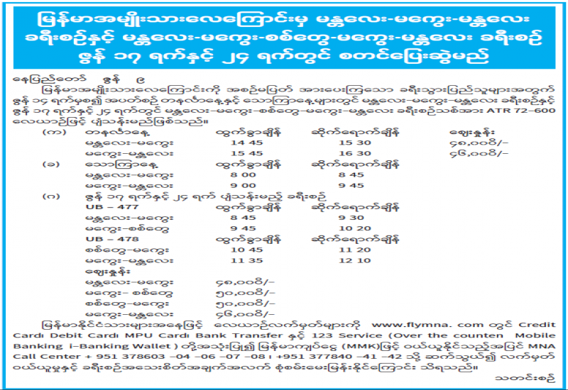 နိုင်ငံခြားရေးဝန်ကြီးဌာန ပြည်ထောင်စုဝန်ကြီး ဦးဝဏ္ဏမောင်လွင် ဦးဆောင်သော မြန်မာကိုယ်စားလှယ်အဖွဲ့သည် ဇွန် ၆ ရက်မှ ၉ ရက်အထိ တရုတ်ပြည်သူ့သမ္မတနိုင်ငံ၊ ချုံချင့်မြို့၌ ကျင်းပခဲ့သည့် အာဆီယံ-တရုတ် နိုင်ငံခြားရေးဝန်ကြီးများ အထူးအစည်အဝေးနှင့် ဆက်စပ်အစည်းအဝေးများသို့ တက်ရောက်ခဲ့ပြီး အထူးလေယာဉ်ဖြင့် ယနေ့နံနက်ပိုင်းတွင် နေပြည်တော်သို့ ပြန်လည်ရောက်ရှိခဲ့ကြောင်း သိရသည်။