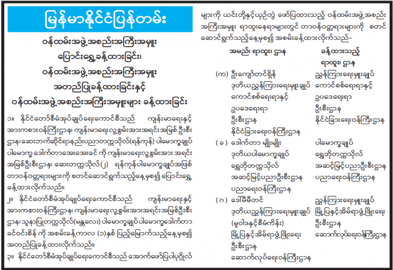 မြန်မာနိုင်ငံရင်းနှီးမြှုပ်နှံမှုကော်မရှင်၏ (၄/၂၀၂၁) ကြိမ်မြောက်အစည်းအဝေးကို ယနေ့ နံနက်ပိုင်းတွင် နေပြည်တော် ရုံးအမှတ်၁၈၊ နိုင်ငံတော်စီမံအုပ်ချုပ်ရေးကောင်စီ အုပ်ချုပ်မှုရုံး၌ ကျင်းပသည်။