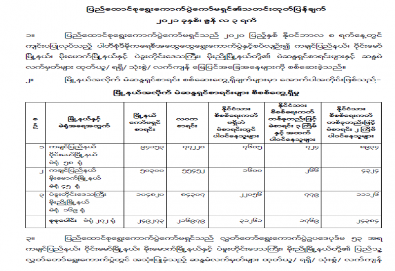 ပြည်ထောင်စုစာရင်းစစ်ချုပ်နှင့် တိုင်းဒေသကြီး/ပြည်နယ်စာရင်းစစ်ချုပ်ရုံး တာဝန်ခံ ညွှန်ကြားရေးမှူးများနှင့် တွေ့ဆုံပွဲကို ယနေ့နံနက် ၁၀ နာရီတွင် ပြည်ထောင်စုစာရင်းစစ်ချုပ် ရုံး၊ အစည်းအဝေး ခန်းမ၌ Virtual System ဖြင့် ကျင်းပသည်။