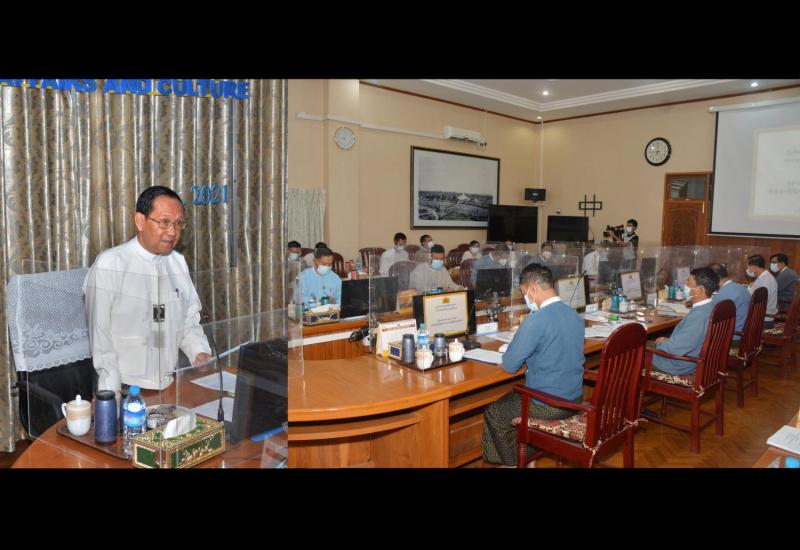 သာသနာရေးနှင့် ယဉ်ကျေးမှုဝန်ကြီးဌာန၏ ပထမအကြိမ် မြန်မာ့ရိုးရာယဉ်ကျေးမှု အဆို၊ အက၊ အတီးနှင့် ပန်းချီ၊ ပန်းပုပြိုင်ပွဲကျင်းပရေးအတွက် လုပ်ငန်းညှိနှိုင်းအစည်းအဝေးကို ယနေ့နံနက်ပိုင်းတွင် နေပြည်တော်ရှိ ရုံးအမှတ် (၃၅) သာသနာရေးနှင့် ယဉ်ကျေးမှုဝန်ကြီးဌာန လောကနတ် အစည်းအဝေးခန်းမ၌ ကျင်းပသည်။