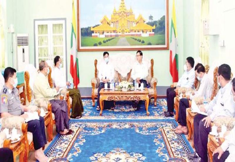 စီးပွားရေးနှင့် ကူးသန်းရောင်းဝယ်ရေးဝန်ကြီးဌာန ပြည်ထောင်စုဝန်ကြီး ဒေါက်တာပွင့်ဆန်းသည် ယနေ့နံနက် ၉ နာရီခွဲကကျောက်ဖြူအထူးစီးပွားရေး ဇုန်စီမံခန့်ခွဲမှုကော်မတီဥက္ကဋ္ဌ ဦးမြင့်သိန်းနှင့်အဖွဲ့ကို စီးပွားရေးနှင့် ကူးသန်း ရောင်းဝယ်ရေးဝန်ကြီး ဌာန ဝန်ကြီးရုံး အစည်းအဝေးခန်းမ၌ လက်ခံတွေ့ဆုံသည်။