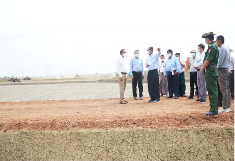 စိုက်ပျိုးရေး၊ မွေးမြူရေးနှင့်ဆည်မြောင်းဝန်ကြီးဌာန ပြည်ထောင်စုဝန်ကြီး ဦးတင်ထွဋ်ဦး သည် မေ ၂၉ ရက် နံနက်ပိုင်းတွင် မကွေးတိုင်းဒေသကြီး မြို့သစ်မြို့နယ် စက်မှုလယ်ယာစနစ် ကျလယ်ယာမြေဖော်ထုတ်ရေး လုပ်ငန်းခွင်သို့ ကြည့်ရှုစစ်ဆေးသည်။