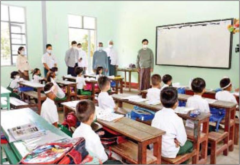 ကိုဗစ် - ၁၉ ကပ်ရောဂါကြောင့် ခေတ္တပိတ်ထားခဲ့ရသည့် အခြေခံပညာကျောင်းများကို ယနေ့နံနက်ပိုင်းတွင် ပြန်လည်ဖွင့်လှစ်ပြီး သက်ဆိုင်ရာ အတန်းအလိုက်သင်ခန်းစာများ သင် ကြားပို့ချပေးလျက်ရှိသည်။