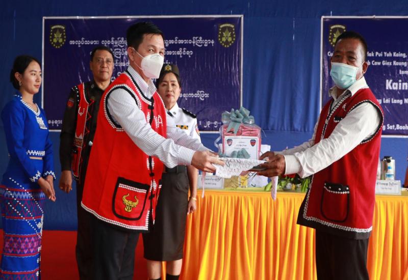 အလုပ်သမား၊ လူဝင်မှုကြီးကြပ်ရေးနှင့် ပြည်သူ့အင်အားဝန်ကြီးဌာန ပြည်ထောင်စုဝန်ကြီး ဦးမြင့်ကြိုင်သည် မေ ၂၃ ရက် နံနက်ပိုင်းက ရှမ်းပြည်နယ် (အရှေ့ပိုင်း)၊ မိုင်းဆတ်မြို့နယ်၊ မိုင်းထလန်းကျေးရွာအုပ်စု၊ မိုင်းကန်းကျေးရွာရုံးခန်းမ၌ မိုင်းဆတ်မြို့နယ်ဦးစီးမှူးရုံးမှ ဝန်ထမ်းများ က ဒေသခံတိုင်းရင်းသားများကို ပန်းခင်းစီမံချက်ဖြင့် အိမ်ထောင်စု လူဦးရေ စာရင်းနှင့် နိုင်ငံသား စိစစ်ရေးကတ်ပြား ထုတ်ပေးခြင်းလုပ်ငန်းနှင့်စပ်လျဉ်း၍ လုပ်ငန်းဆောင်ရွက်ပေးနေမှုနှင့် နယ်မြေခံ တပ်နယ်မှ တပ်မတော်သားဆရာဝန်များနှင့် သူနာပြုများက သွေးအုပ်စု ခွဲခြားစစ်ဆေး ပေးနေမှု များကို လှည့်လည်ကြည့်ရှုအားပေးသည်။
