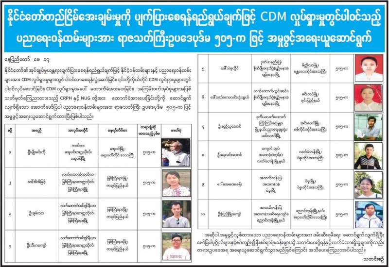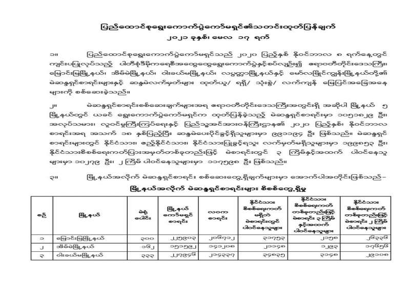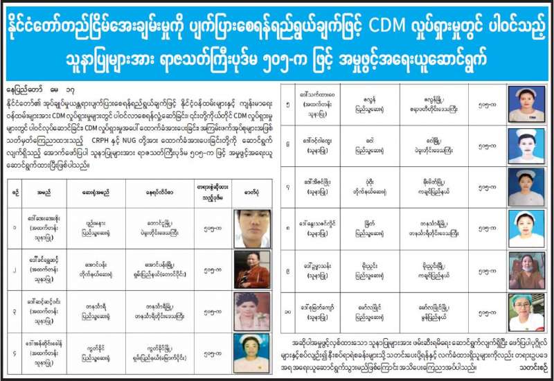 တိုင်းဒေသကြီး/ ပြည်နယ်များရှိ မြို့နယ်အချို့၌ လက်နက်ကိုင်ဆောင်လိုခြင်းမရှိဘဲ အေးချမ်းစွာနေထိုင်လိုသည့်ပြည်သူလူထုအများစုမှ ၎င်းတို့၏ သဘောဆန္ဒပြများအလျောက် ၎င်းတို့ ထံတွင်ရှိသောတူမီးသေနတ်များ၊ လက်လုပ်သေနတ်၊ ဒူးလေးနှင့် ဂျင်ကလိများအုပ်ချုပ်ရေး တာဝန်ရှိ သူများမှတစ်ဆင့်လုံခြုံရေးတပ်ဖွဲ့ဝင်များထံလာရောက်အပ်နှံခဲ့ကြောင်းသိရသည်။