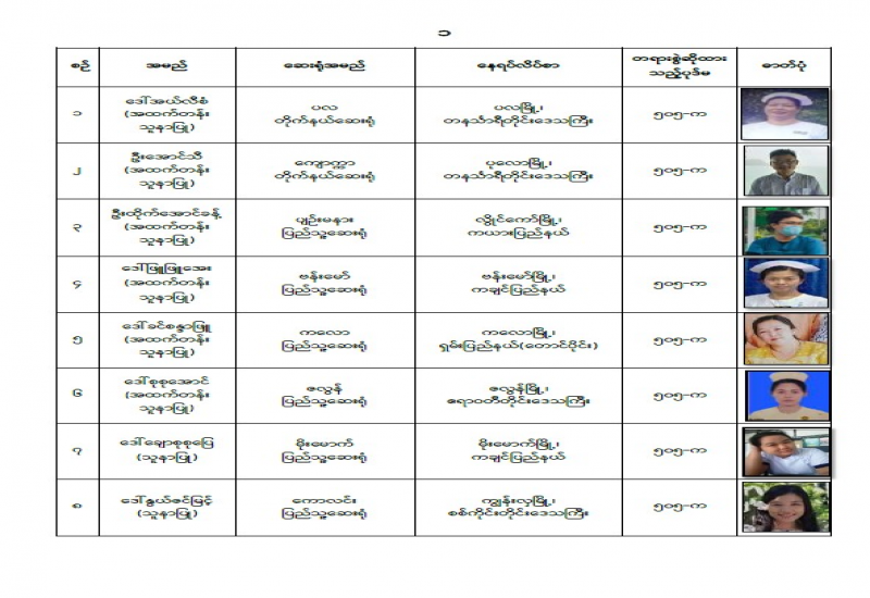 ပြည်သူလူထု၏ ခွဲစိတ်ကုသမှုဆိုင်ရာရောဂါ၊ သွားနှင့် ခံတွင်းရောဂါ၊ အရိုး အကြောရောဂါ၊ အစာအိမ် ရောဂါ၊ မျက်စိရောဂါ၊ နား၊ နှာခေါင်း၊ လည်ချောင်းရောဂါ၊ သားဖွားမီးယပ်ရောဂါ၊ သွေးတိုးရောဂါ၊ နှလုံးရောဂါ၊ အထွေထွေရောဂါတို့နှင့် ပတ်သက်၍ လိုအပ်သည့် ကျန်းမာရေး စောင့်ရှောက်မှု လုပ်ငန်းများ ဆောင် ရွက်ပေးနိုင်ရန်အတွက် အခက်အခဲ ဖြစ်ပေါ်လျက်ရှိသည့် ဒေသအသီးသီးမှ ဝန်ထမ်းများနှင့် ဒေသခံများ၏ တောင်းဆိုမှုအရ တပ်မတော်မှ ဆေးကုသရေးအဖွဲ့များ စေလွှတ်၍ ဆေးကုသရေး လုပ်ငန်းများကို ဆောင်ရွက်ပေးလျက်ရှိသည်။
