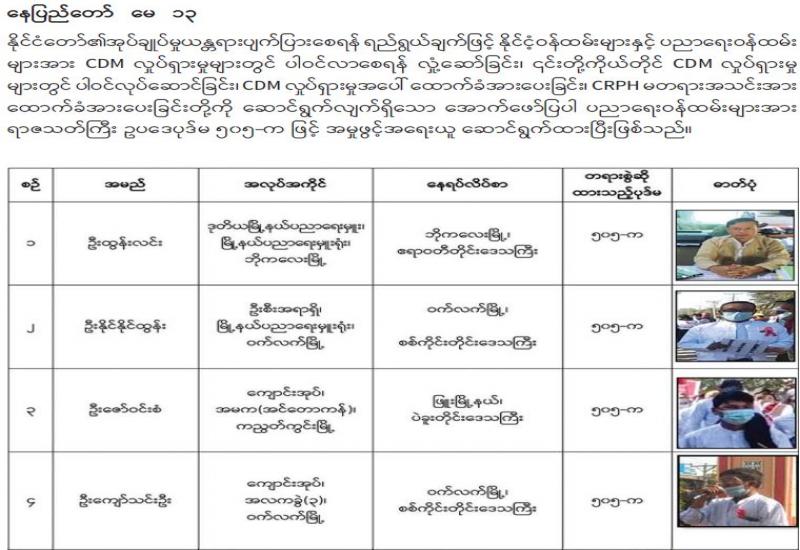 မန္တလေးတိုင်းဒေသကြီး မြင်းခြံမြို့နယ် တလုပ်မြို့ကျေးရွာ၌ ဆူပူအကြမ်းဖက် ဆန္ဒပြသူများ အား ဖြိုခွဲထိန်းသိမ်းစဉ် လုံခြုံရေးတပ်ဖွဲ့ဝင် ခြောက်ဦး ထိခိုက်ဒဏ်ရာရရှိကာ ဆူပူအကြမ်းဖက် သူအမျိုးသား ငါးဦးနှင့် အမျိုးသမီး တစ်ဦးတို့ကို ဆူပူအကြမ်းဖက် ရာတွင် အသုံးပြုသည့် လက်နက်/ ခဲယမ်း၊ ဆက်စပ်ပစ္စည်းများနှင့်အတူ ဖမ်းဆီးရမိခဲ့ပြီး ထိရောက်စွာ အရေးယူနိုင်ရေး ဆောင်ရွက် လျက်ရှိသည်။