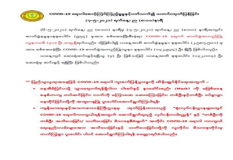 မိုးလေဝသနှင့်ဇလဗေဒညွှန်ကြားမှုဦးစီးဌာနမှ (၂၀၂၁ ခုနှစ်၊ မေလ (၇)ရက်နေ့ ည(၇:၀၀) နာရီအချိန် ထုတ်ပြန်ချက်)