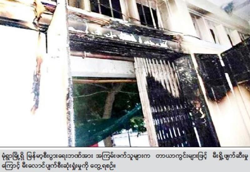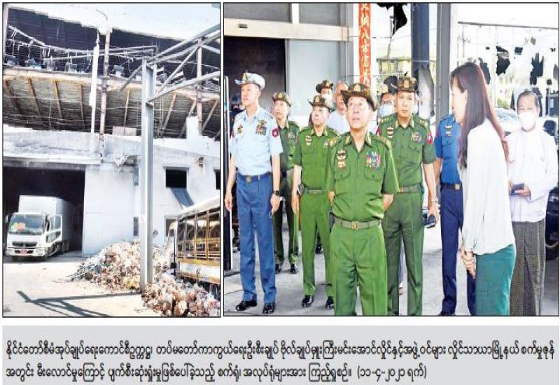 ဆူပူအကြမ်းဖက်သူများအနေဖြင့် တိုင်းဒေသကြီးအချို့ရှိ မြို့နယ်အချို့၌ နိုင်ငံတော် တည်ငြိမ်အေးချမ်းရေးကို ပျက်ပြားစေရန် ရည်ရွယ်ချက်များဖြင့် နိုင်ငံတော်ပိုင် အဆောက် အဦများအား မီးရှို့ခြင်းနှင့် မီးပုလင်းများဖြင့် ပစ်ပေါက်ခြင်းတို့ ပြုလုပ်ခဲ့၍ အဆောက်အဦအချို့ မီးလောင် ပျက်စီး ဆုံးရှုံးခဲ့ကြောင်း သိရသည်။
