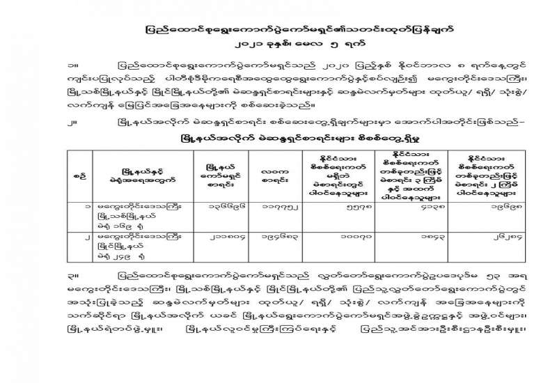 ပြည်ထောင်စုရွေးကောက်ပွဲကော်မရှင်၏သတင်းထုတ်ပြန်ချက် ၂၀၂၁ ခုနှစ်၊ မေလ ၅ ရက်
