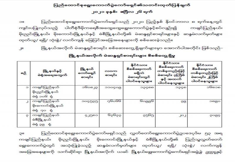 (၂၅-၄-၂၀၂၁) ရက်နေ့၊ ည (၈:၀၀) နာရီမှ (၂၆-၄-၂၀၂၁) ရက်နေ့၊ ည (၈:၀၀) နာရီအတွင်း ဓာတ်ခွဲနမူနာစုစုပေါင်း (၁,၅၁၇) ခုအား စစ်ဆေးပြီးစီးခဲ့ရာ COVID-19 ရောဂါ ဓာတ်ခွဲအတည်ပြု လူနာသစ် (၁၈) ဦး တွေ့ရှိရပါသည်။ သို့ဖြစ်ပါ၍ ယနေ့အထိ ဓာတ်ခွဲနမူနာ စုစုပေါင်း (၂,၅၆၈,၈၁၁) ခု အား စစ်ဆေးခဲ့ပြီး COVID-19 ဓာတ်ခွဲအတည်ပြုလူနာ စုစုပေါင်း (၁၄၂,၇၄၀) ဦး ရှိပြီ ဖြစ်ပါသည်။