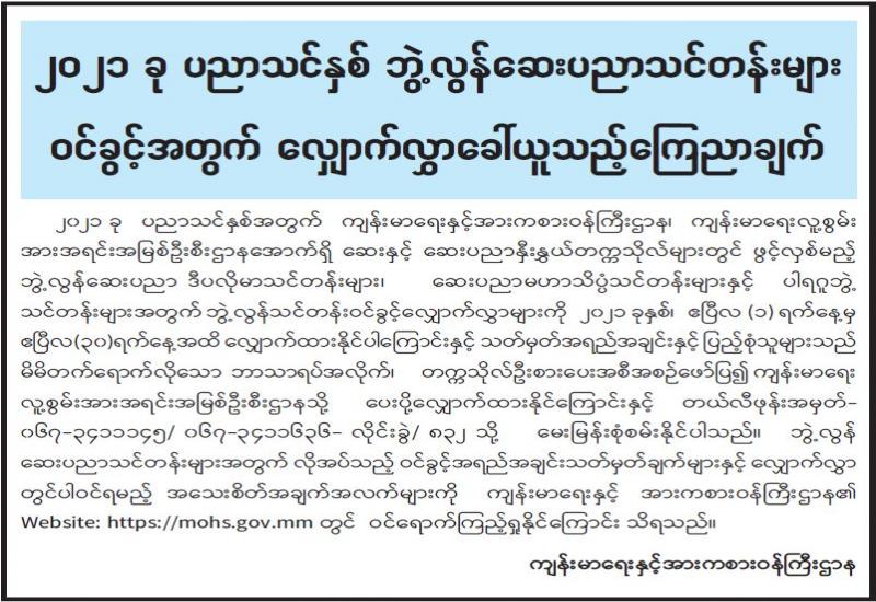 (၂၁-၄-၂၀၂၁) ရက်နေ့၊ ည (၈:၀၀) နာရီမှ (၂၂-၄-၂၀၂၁) ရက်နေ့၊ ည (၈:၀၀) နာရီအတွင်း ဓာတ်ခွဲနမူနာ စုစုပေါင်း (၁,၅၉၀) ခုအား စစ်ဆေးပြီးစီးခဲ့ရာ COVID-19 ရောဂါ ဓာတ်ခွဲအတည်ပြု လူနာသစ် (၁၃) ဦး တွေ့ရှိ ရပါသည်။ သို့ဖြစ်ပါ၍ ယနေ့အထိ ဓာတ်ခွဲနမူနာ စုစုပေါင်း (၂,၅၆၃,၅၀၀) ခု အား စစ်ဆေးခဲ့ပြီး COVID-19 ဓာတ်ခွဲ အတည်ပြုလူနာ စုစုပေါင်း (၁၄၂,၆၈၇) ဦး ရှိပြီ ဖြစ်ပါသည်။