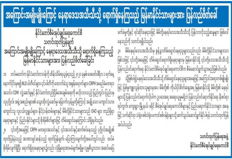 တပ်မတော်က နိုင်ငံ့တာဝန်ကို ထိန်းသိမ်းရယူခဲ့ရသည့် ၂၀၂၁ ခုနှစ် ဖေဖော်ဝါရီလ ၁ ရက်နေ့ နောက်ပိုင်းမှစတင်၍ NLD ပါတီဝင်များ၊ ၎င်းပါတီကို ထောက်ခံသူ နိုင်ငံရေးအစွန်းရောက်များ၊ CRPH အမည်ခံ မတရားအသင်းနှင့် CDM တွင် ပါဝင်သူများ၊ အားပေးအားမြှောက်ပြုလုပ်သူများ၏ လှုံ့ဆော်ပေးမှုများကြောင့် စိတ်ခံစားလွယ်သူ၊ စိတ်ခံစားချက်ပြင်းထန်သူများသည် နိုင်ငံရေးလှုပ်ရှားမှုများ ပြုလုပ်ခဲ့ကြသည်။