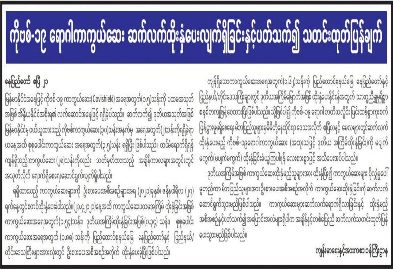 ကိုဗစ်-၁၉ ရောဂါ ကာကွယ်ထိန်းချုပ်ရေး လုပ်ငန်းညှိနှိုင်းအစည်းအဝေးကို ယနေ့နံနက်ပိုင်းက ပြည်သူ့ကျန်းမာရေးဦးစီးဌာန၊ ရုံးအမှတ် (၄၇) တွင် ကျင်းပသည်။
