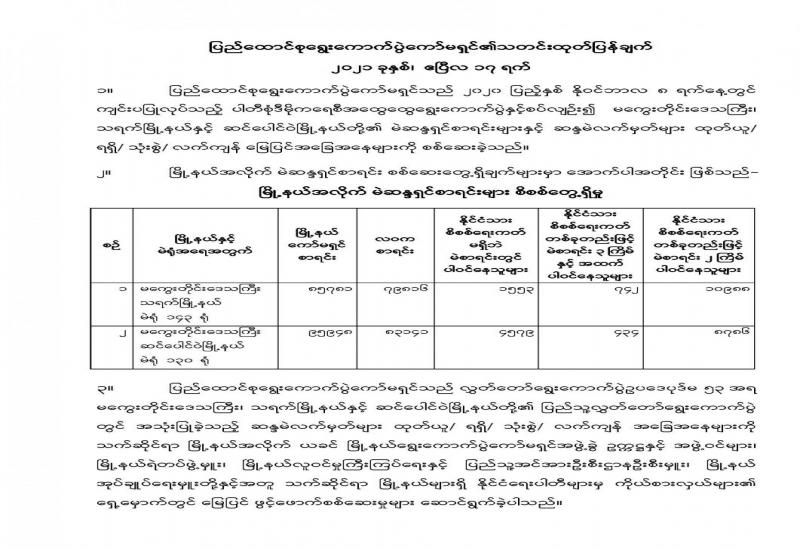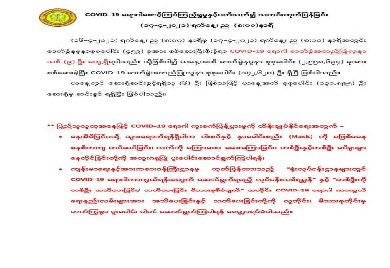 နေပြည်တော်ကောင်စီနယ်မြေ၊ တပ်ကုန်းမြို့၊ စစ်ကိုင်းတိုင်းဒေသကြီး၊ ဖောင်းပြင်မြို့နယ်နှင့် ချင်းပြည်နယ်၊ ထန်တလန်မြို့၊ မန္တလေးတိုင်းဒေသကြီး၊ ရမည်းသင်းမြို့နယ်နှင့် စဉ့်ကိုင်မြို့နယ် များအတွင်းရှိ ကျေးရွာအချို့တို့၌ ဆူပူ အကြမ်းဖက်မှုတွင် အသုံးပြုသည့် လက်လုပ်သေနတ်များ ကိုင်ဆောင်နေကြောင်း သတင်းအရ အေပြီ ၁၅ ရက်နှင့် ယနေ့တို့တွင် တိုင်းစစ်ဌာနချုပ်ရှိ တပ်နယ်အသီးသီးမှ လုံခြုံရေးတပ်ဖွဲ့ဝင်များက ကျေးရွာအုပ်ချုပ်ရေးမှူးများနှင့်အတူ သွားရောက်၍ ဒေသခံ ပြည်သူများကို တရားမဝင် လက်နက်ကိုင်ဆောင်ခြင်းသည် တရားဥပဒေဖြင့် ထိရောက်စွာ အရေးယူခံရနိုင်ကြောင်း နားလည်သဘော ပေါက်အောင် ရှင်းလင်း ပြောကြား သည်။