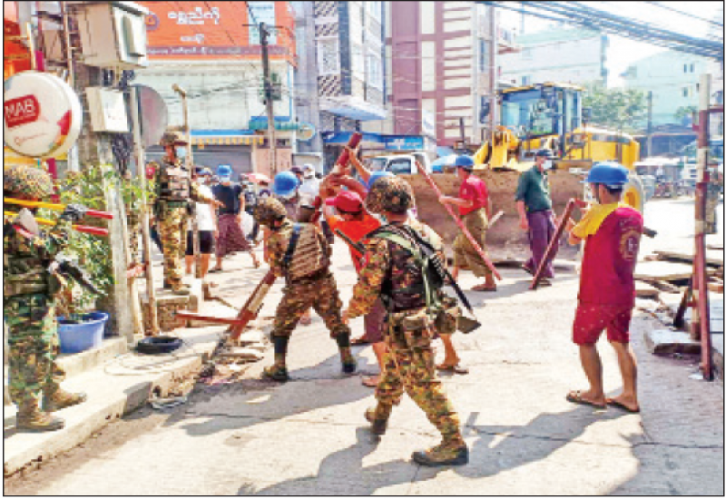 ရန်ကုန်မြို့အတွင်း တည်ငြိမ်အေးချမ်းရေးကို နှောင့်ယှက် ဖျက်ဆီးလိုသူများက အများ ပြည်သူသွား လမ်းများပေါ်တွင် လမ်းပိတ် အတားအဆီးများ ပြုလုပ်ထားခြင်းအား ပြည်သူများ စိတ်အေးချမ်းသာစွာ သွားလာနိုင် ရေးအတွက် မြို့နယ်စီမံအုပ်ချုပ် ရေးအဖွဲ့များ၊ လုံခြုံရေးတပ်ဖွဲ့ဝင် များနှင့် စည်ပင်သာယာ ဝန်ထမ်းများက ယန္တရားများ၊ မြေသယ် ယာဉ်များ အသုံးပြုကာ ဖယ်ရှား ရှင်းလင်းခြင်းနှင့် အစိုးရ ဆန့်ကျင် စာသားများကိုဆေးဖြင့် ရေးဆွဲ ထားခြင်း၊ နံရံများ၊ တံတိုင်းများ တွင် ကပ်ထားခြင်းအား စည်ပင် သာယာဝန်ထမ်းများက ဖျက်သိမ်း ရှင်းလင်းခဲ့ကြောင်း သိရသည်။