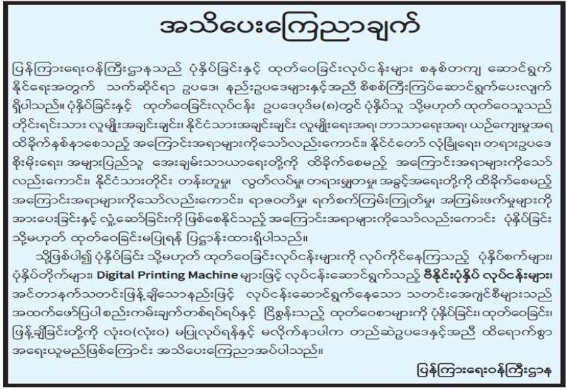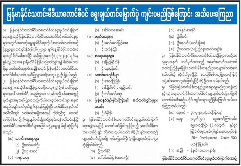 မြန်မာနိုင်ငံသတင်းမီဒီယာကောင်စီဝင် ရွေးချယ်တင်မြှောက်ပွဲ ကျင်းပမည်ဖြစ်ကြောင်း အသိပေးကြေညာ