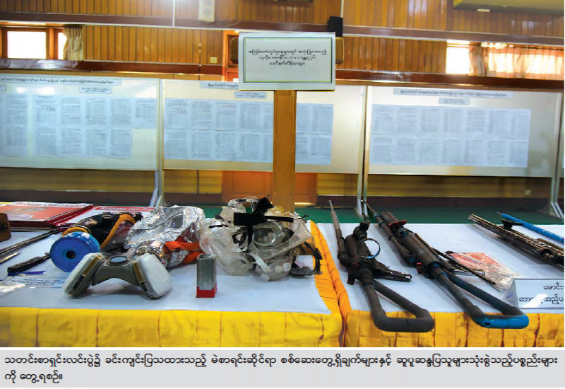 မြို့နယ်အချို့၌ ဆူပူအကြမ်းဖက်မှုလုပ်ရပ်များတွင် အသုံးပြုမည့် လက်နက်ကိရိယာများကို လက်ဝယ် ထားရှိသူများနှင့်အတူဆက်လက်ဖော်ထုတ်ဖမ်းဆီး ရမိခဲ့ကြောင်း သိရသည်။